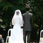 子どもたちは、わーっと、一斉に公園内に散らばっていき、僕はみのりと二人で、集合場所で遊びながら待っていました。すると、なにやら、台とカーペットを展開しだす人たちが。暫くすると、新郎新婦登場。リハーサルを始めるじゃないですか。ガーデンウェディングって奴ですね!?