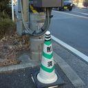 自転車での帰り道。駅から家に向かう途中、信号機の脇に、こんな三角コーンが。信号の制御機の入れ替えをしているので、三角コーンで立ち入り禁止しているのでしょう。それ自体は別におかしなことではありませんが、書いてある文字が、ちょっと...。