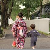 髪留め、浴衣、下駄、巾着、等々を気合い入れて自分で準備したのはいいものの、兵児帯入れ忘れ。義母のタンスを奧さんが漁って、黒の兵児帯と白の飾り帯を発見。黒はイヤ、というみのりの意向で、飾り帯だけでごまかすことに。まぁ、本人がいいといっているので多少のことには目をつぶりましょ。