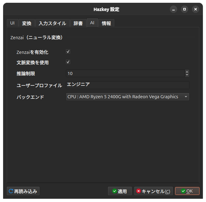 まず、fcitx5が再起動してきたら、慌てずhazkey以外のものを選び、しかる後に設定ツールを起動して、そっとAIをオフにすれば入力はできるようになる。ライブ変換は依然有効であり、快適な日本語入力を体験できるが、AIによる高度な文脈依存の変換はできない。そこをどう考えるかだが、特にAIがなかったとしてもMozcに比べて変換精度が悪いわけでもない。